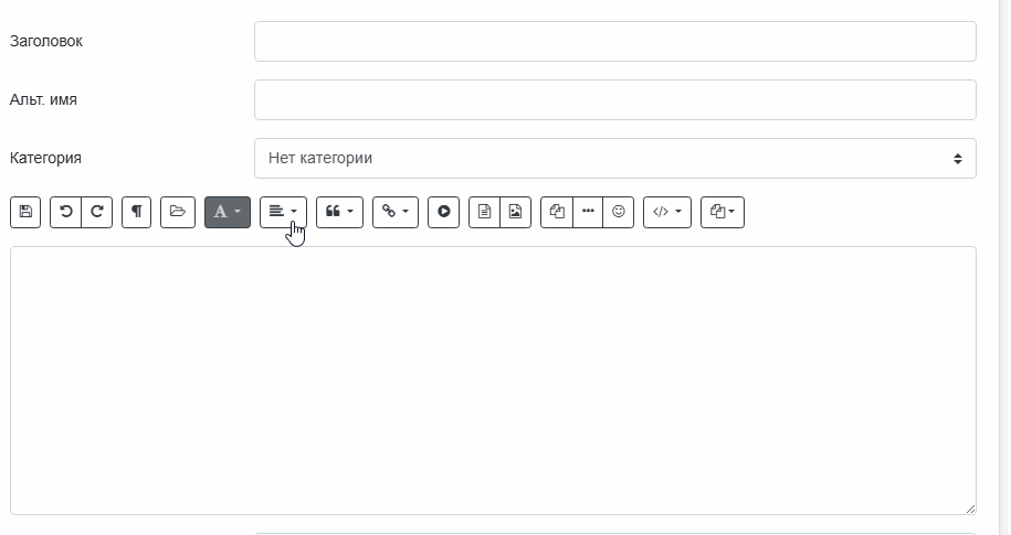 - Быстрая вставка шаблона в активное поле редактора без перезагрузки страницы.